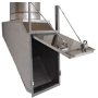 The linen discharge is set at the bottom of linen chutes to allow exiting of laundry. The door is held open by springs and fusible link(s), which will close in the event of fire preventing further spread of the fire through the chute. The door comes with one (slam latches) as well, allowing the door to be closed for bin switching or maintenance work